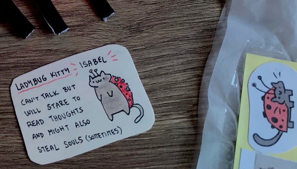 + very handmade creature with a card and stickers