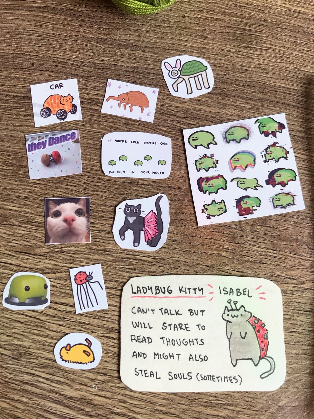 beanie + creature with card + stickers