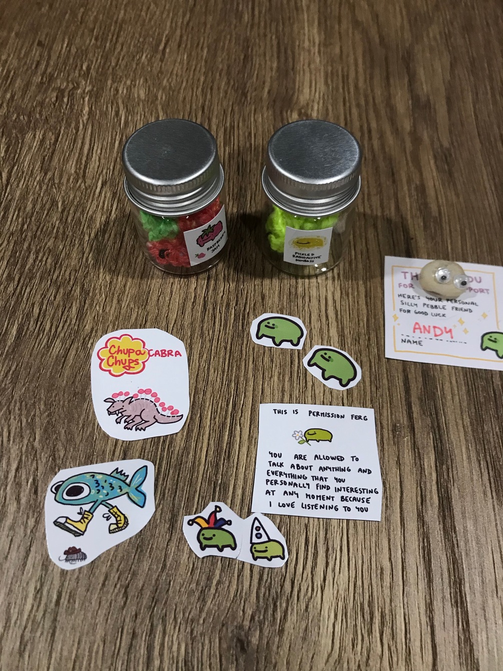 2 jars + stickers + bonus pebble friend