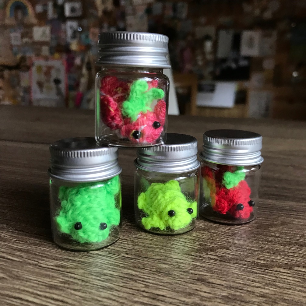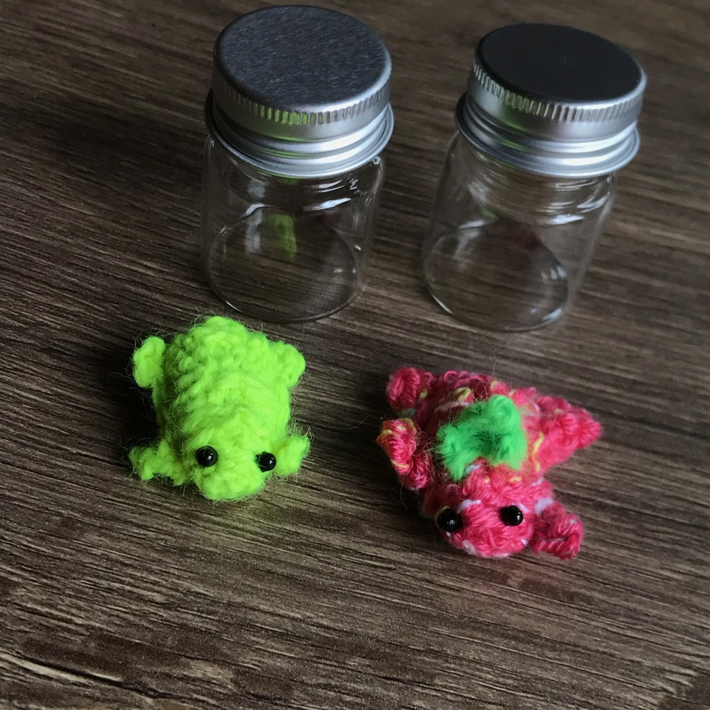 2 pcs frog jars (raspberry and yellow neon)